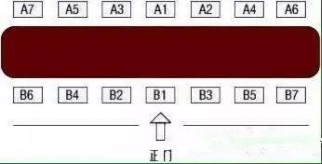 领导为偶数时,1、2号领导同时居中,2号领导依然在1号领导左手位置,3号领导依然在1号领导右手位置。可参见下图的座次排列图:
