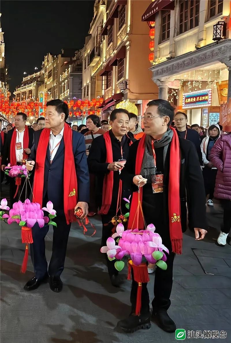 泰国中华总商会主席林楚钦,新西兰潮属总会董事局主席许少波,中国侨商联合会常务副会长、汕头市侨商会会长林少华,中国侨商联合会常务副会长、深圳市潮汕商会会长郑汉明,阿联酋广东商会会长张钦伟,老挝中国总商会副会长姚勇,柬埔寨潮汕商会副会长黄泽坤等多位侨领提着传统的莲花灯,兴致勃勃地观赏民俗表演,漫步灯会。