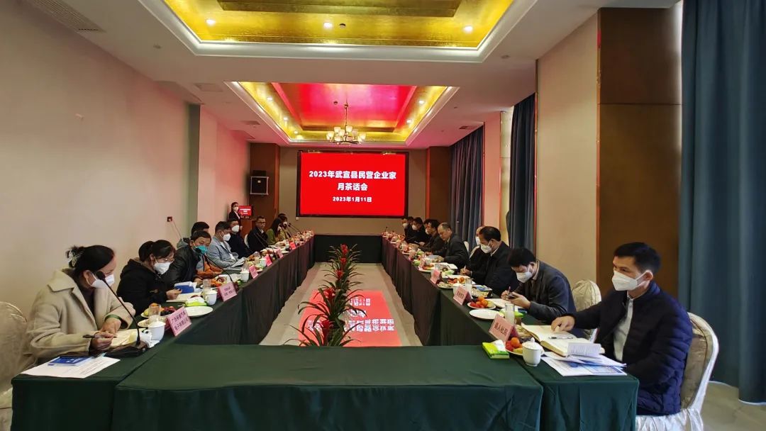 1月11日上午,在新春佳节来临之际,武宣县召开“2023年武宣县民营企业家茶话会”,县委副书记陈礼锋,副县长、县工商联主席毛正灵,副县长韦庆丰和部分民营企业家齐聚一堂,共谋发展,共商未来。