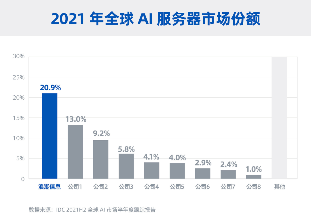 没有最新的图片,我放一张2021年的图片,大家来看看,浪潮信息在全球AI服务器领域,拿下了21%左右的份额,排名全球第一。