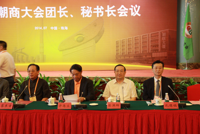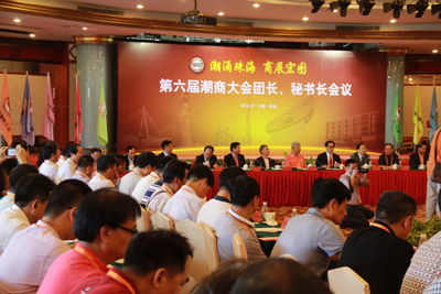 7月26日,第六届潮商大会团长、秘书长会议在珠海度假村酒店隆重举行,来自国内81个潮汕商会的团长、秘书长以及海外27个潮商社团代表共260人欢聚一起,共商潮商发展大计。珠海市市长何宁卡,中共广东省委原副书记、广东潮人海外联谊会会长蔡东士,广东省原副省长许德立,广东省政协原副主席李统书,珠海市委常委、统战部长陈洪辉,我会领导黄茂强、孔德镐、杨一冰、郑晶出席会议。会议由第六届潮商大会筹委会执行主席、珠海潮人总商会主席林玉潮主持。