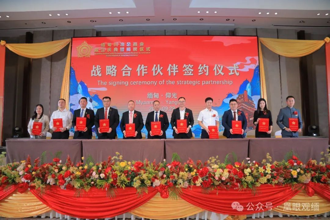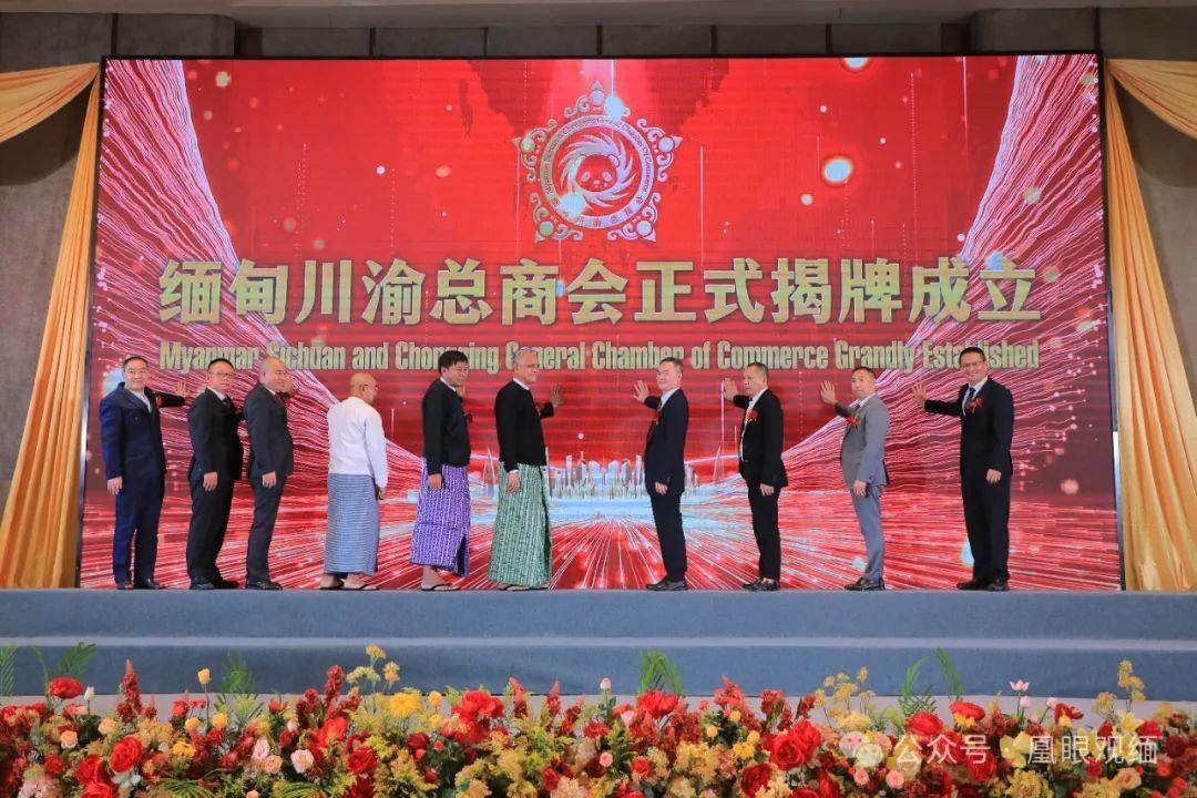 A Bank、重庆沛杰教育科技集团有限公司、新加坡阿朗斯投资集团、缅甸南亚未来投资集团、米仓供应链集团、缅甸威尔玛集团、缅甸伍卫国际安保服务有限公司等相关机构、商协会和友好合作单位(排名不分先后)的嘉宾悉数到场,共同为缅甸川渝总商会的成立献上祝福与期待。