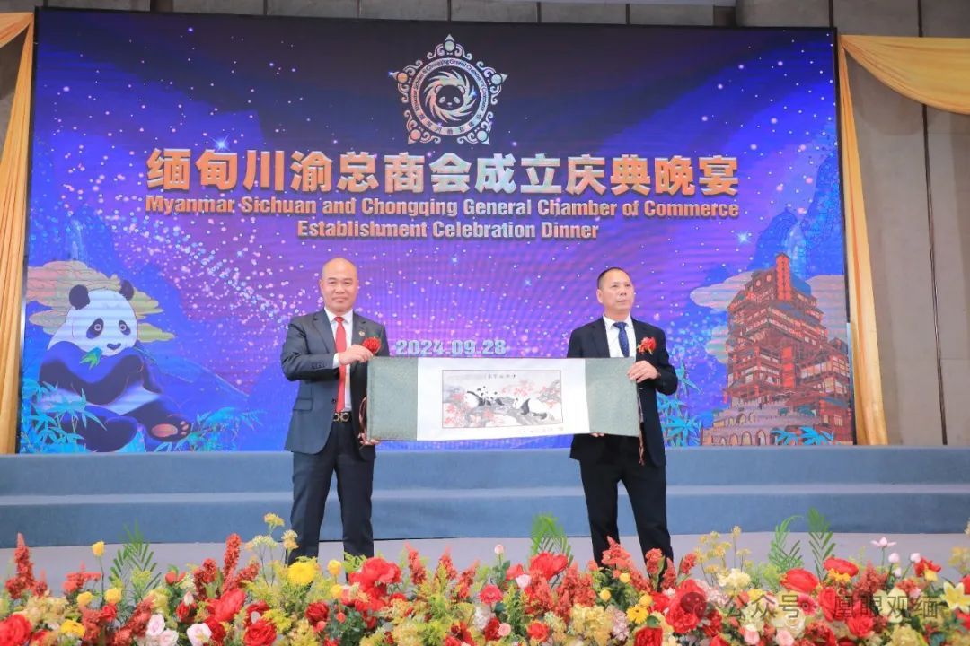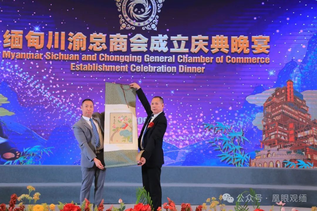 晚宴上,兄弟商协会的代表们也带来了寓意深远的礼品表达了对缅甸川渝总商会未来发展的美好期许和坚定支持。
