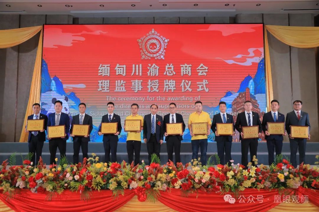 随后,授牌仪式隆重举行。欧阳道冰参赞为杨显强会长授牌,标志着商会正式获得官方认可。随后,缅甸川渝总商会执行会长黄尧、监事长吴茂林分别代表商会向执行会长、监事长、秘书长、法律顾问等职位的授牌仪式,进一步明确了商会的管理架构。每一块铭牌的授予都凝聚着商会全体成员的心血和汗水,也见证了商会从无到有、从小到大的发展历程。