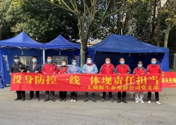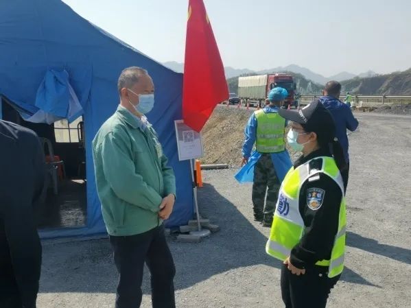 4月6日,太湖源镇商会副会长、新乡贤周静秋带领太湖源生态旅游公司的抗疫志愿者在浪口查验点执勤。