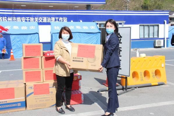 4月7日上午,区政协委员、天目山镇白鹤村新乡贤陈霞向天目山镇捐赠防护服、医用手套、医用面罩等防疫物资。