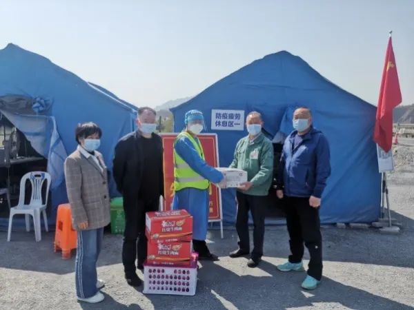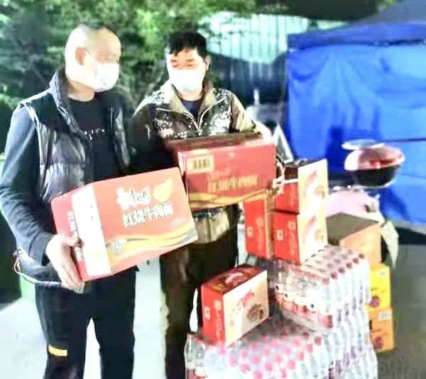4月7日下午,河桥镇商会会员、华名食品有限公司负责人王东平,为企业所在地的中鑫村疫情防控宣传服务点送去方便面、矿泉水、水果等物资。