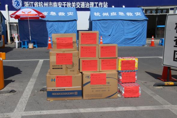 4月6日晚,板桥镇商会会员企业,杭州临安艾美特鞋业有限公司为板桥镇灵溪、葱坑两个疫情防控查验点送去方便面、矿泉水、食品、竹炭等物资,慰问一线值守的疫情防控人员。