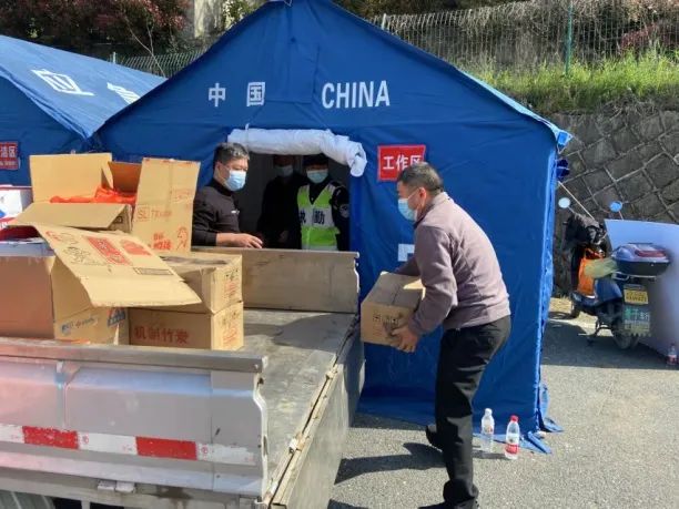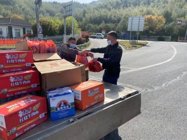 4月8日上午,潜川镇商会会长、新乡贤联谊会会长、临安奥星电子股份有限公司董事长詹有耕,为潜川镇208省道乐平查验点送去方便面、水果等物资慰问一线的疫情防控工作人员。