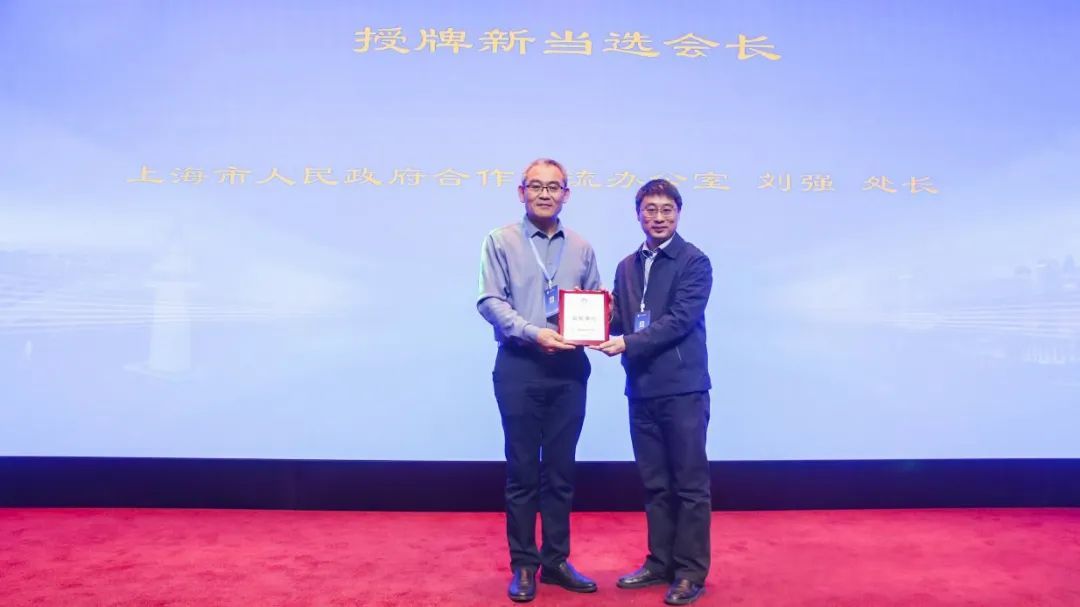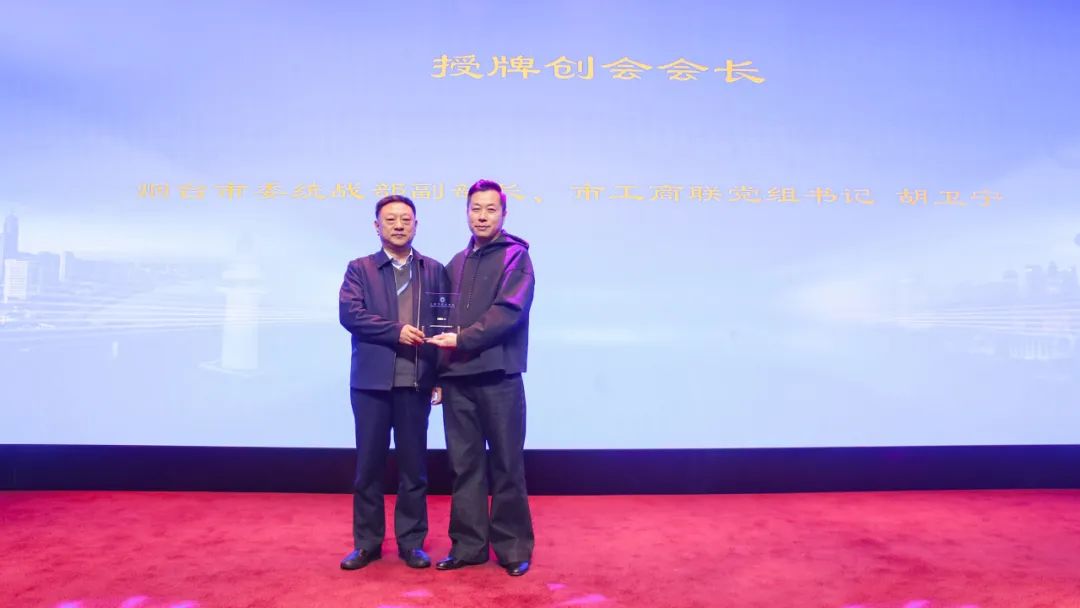 会上,上海市政府合作交流办公室联络处处长刘强为会长盖国英授牌,烟台市委统战部副部长、市工商联党组书记胡卫宁为创始会长陈河江授牌。盖国英为新一届理事会及秘书长授牌。