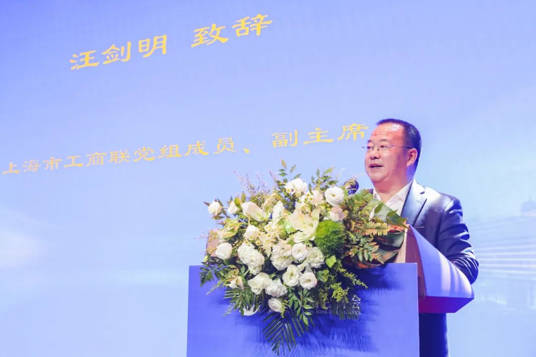 汪剑明代表上海市工商联、市总商会向商会的成功换届和新一届商会领导班子的顺利当选表示祝贺。