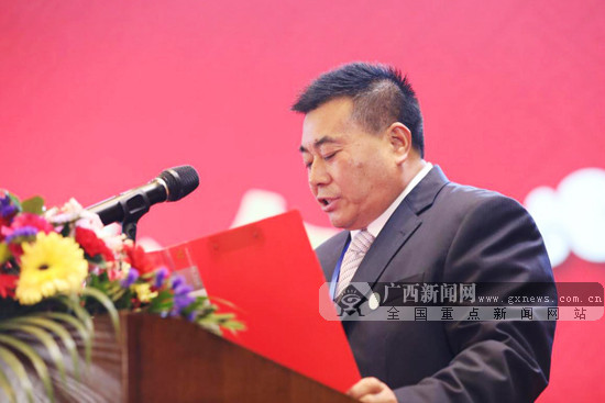 南宁衡阳商会首任会长梁柏生在成立大会上致辞。广西新闻网通讯员黄鸿强 供图