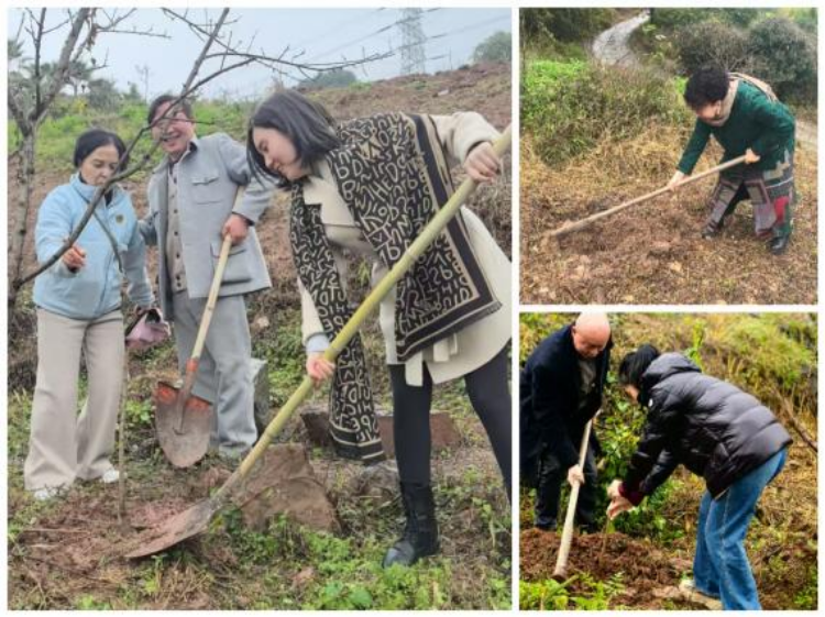 志愿植树现场,大家热情高涨,“你扶苗、我铲土”,相互协作,干劲十足,有条不紊。经过大家的共同努力,一棵棵新栽种的蜂糖李树苗迎风挺立,为美丽乡村建设增添了一抹新绿。这几十棵新植树苗,在女性们心中播下了环保的种子,坚定了她们守护绿水青山的信念与决心。