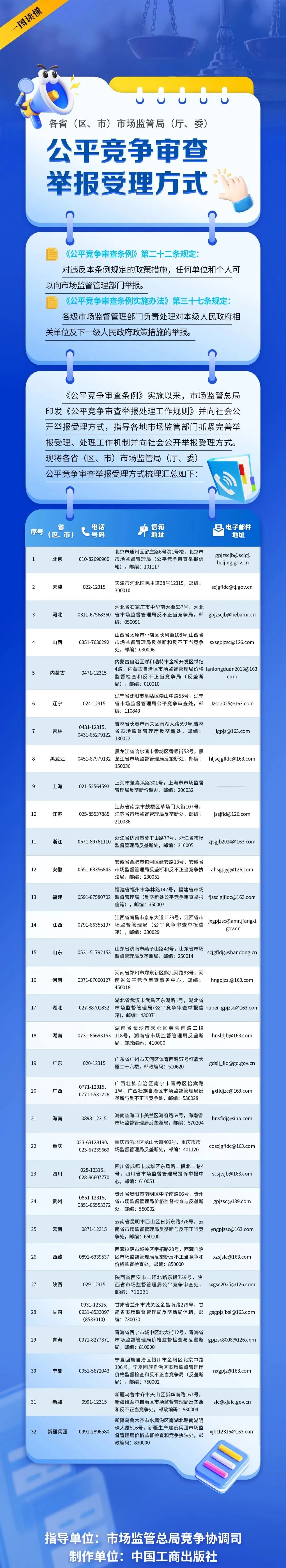 (三)建立健全公平竞争审查抽查、举报处理、督查机制,在全国范围内组织开展相关工作;