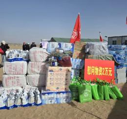 “这批桌凳正好解决我们露天用餐的难题!”来自杭州的大学生志愿者擦拭着额头的汗水,接过略显斑驳的课桌椅。在她身后,由市、县妇联以及女企业家商会妇联筹措的价值两万元物资正有序卸车:码放整齐的矿泉水在沙地上筑起“蓝色城墙”,筐筐新鲜蔬菜透着春意,成箱鸡蛋裹着防震泡沫,与折叠凳、旧桌椅共同构筑起沙漠里的温暖驿站。