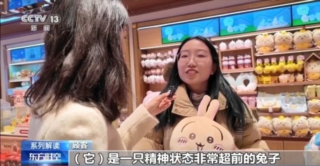 顾客:它是一只精神状态非常超前的兔子,就是在生活当中只要是自己开心就可以了。所以我觉得对于当代青少年或者当代青年来说,不管是工作也好,上班上学也好,它这种心理状态是非常好的。