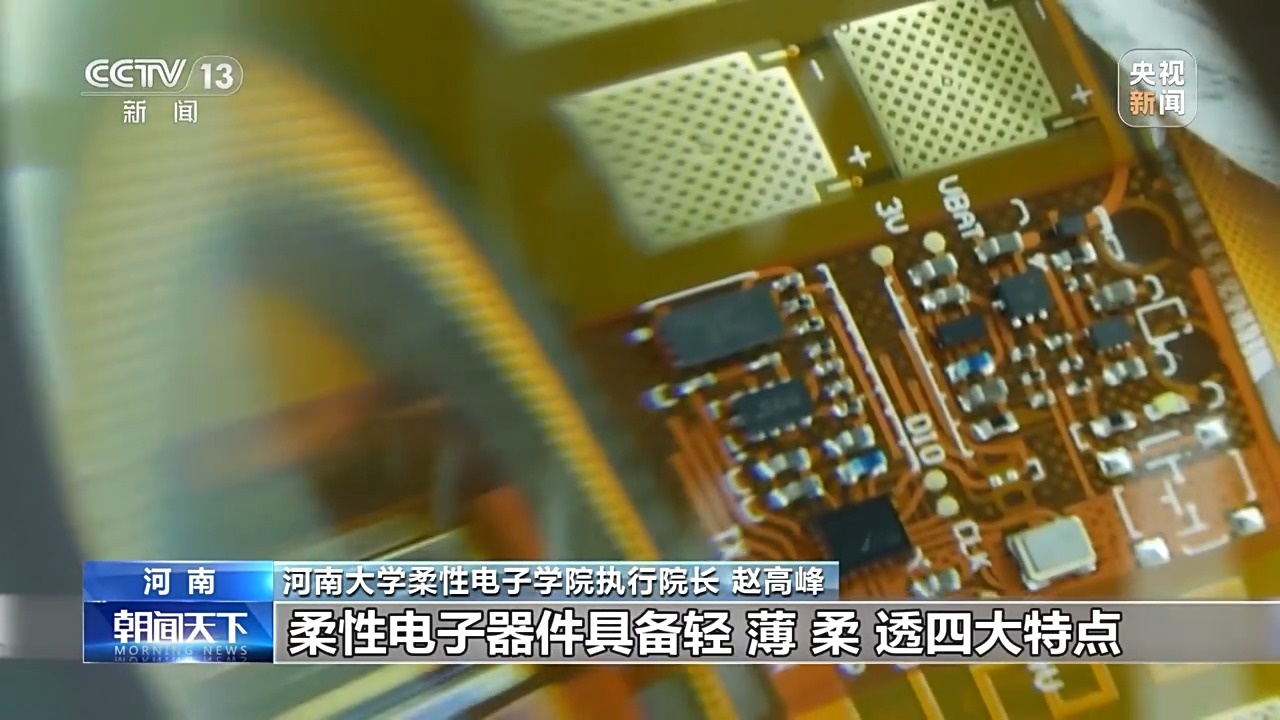 河南大学柔性电子学院执行院长 赵高峰:柔性电子技术追求刚柔相济,电子器件具备轻、薄、柔、透四大特点,可拉伸,延展性强,可加工性强。
