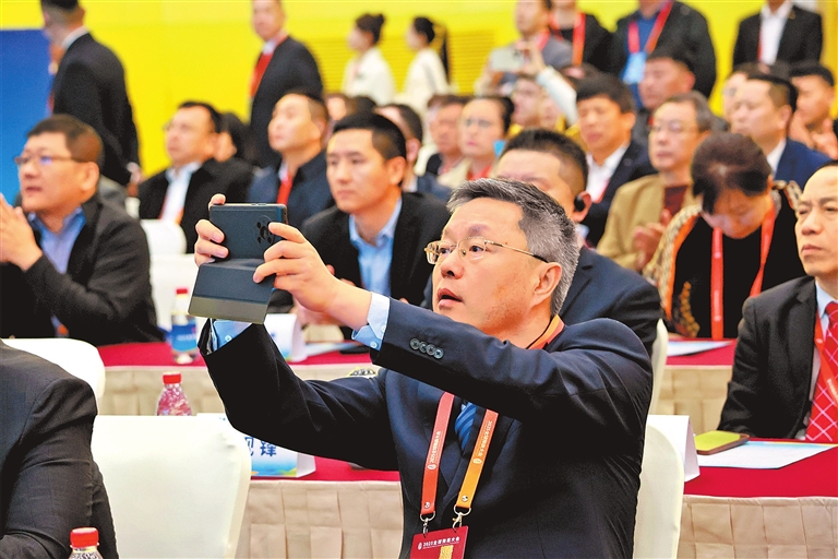 8点30分,距离开幕还有一个小时,轩辕堂外已人头攒动。“好久不见啊伙计”“回家真好”……一张张幸福的笑脸,传递出归家的喜悦;新加微信的提示音此起彼伏,串起合作交流的纽带。