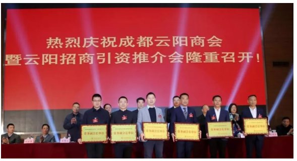 会议为成都云阳商会授牌,为商会会长、执行会长、监事长等授牌和颁发证书。