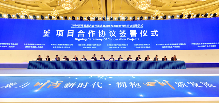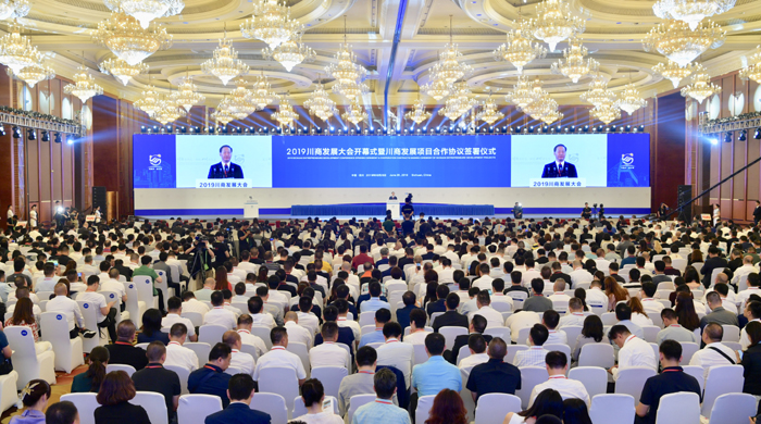 6月26日上午,2019川商发展大会开幕式暨川商发展项目合作协议签署仪式在成都举行,来自境内外的1500多名川商、知名企业和商(协)会负责人齐聚蓉城,共叙桑梓之情、共谋发展新篇。省委书记彭清华出席开幕式暨合作协议签署仪式并致辞,省委副书记、省长尹力主持,省政协主席柯尊平出席,全国工商联党组副书记、副主席樊友山致辞。