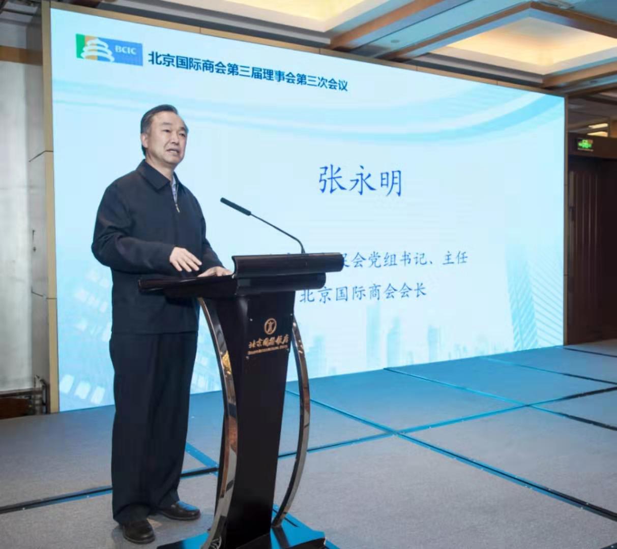 张永明首先通报了北京市贸促改革情况,解读了北京市贸促会的机构性质和改革发展方向,倡议会员单位深度参与国际交流合作,积极促进北京外经贸事业持续健康快速发展,为建设国际一流的和谐宜居之都贡献力量。