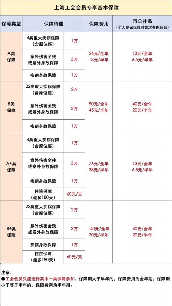 “上海工会会员专享基本保障”仅针对上海市在职工会会员。