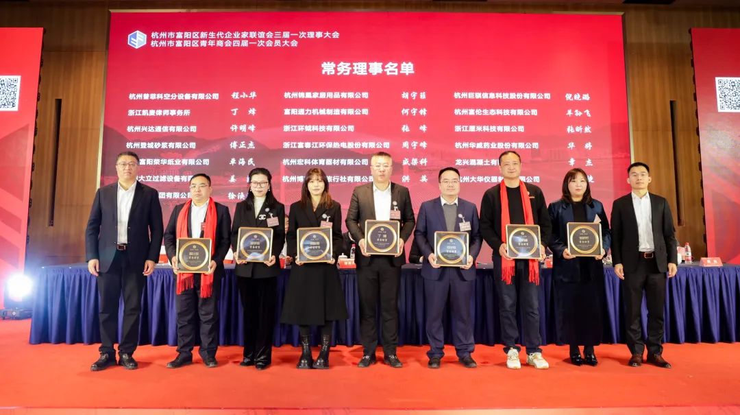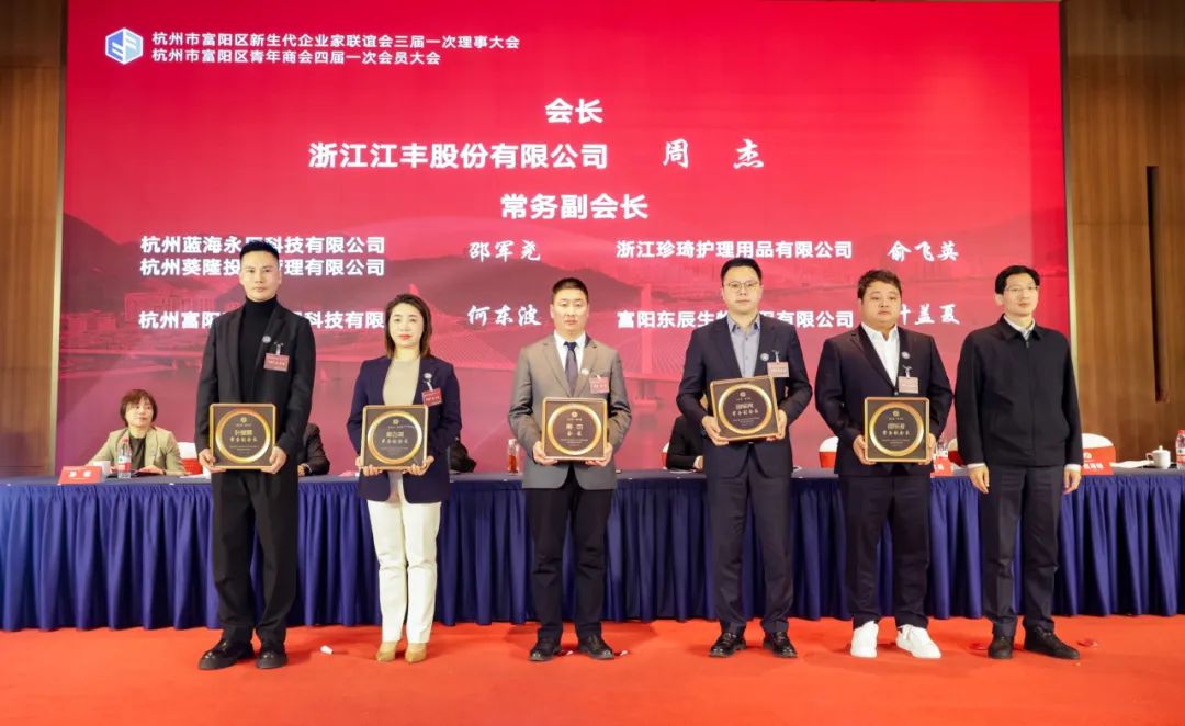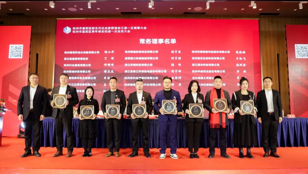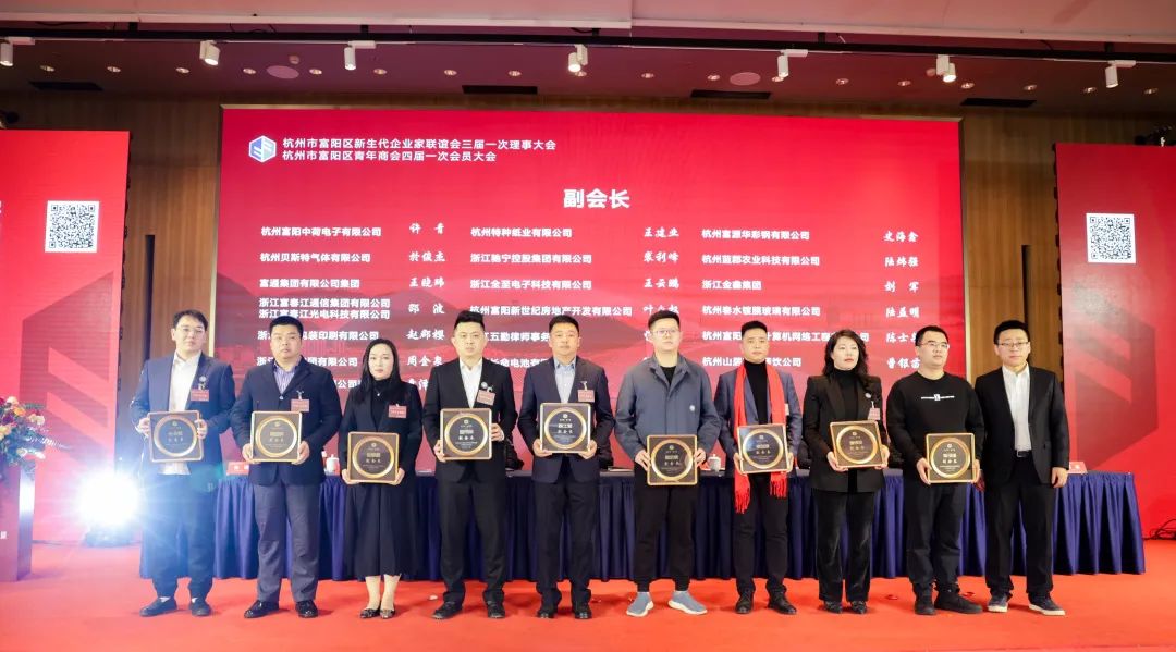 1月24日下午,富阳区新企联三届理事大会暨青年商会第四届会员大会召开。团市委副书记阮伟哲,区领导谢渐升、祝燕青参加会议。
