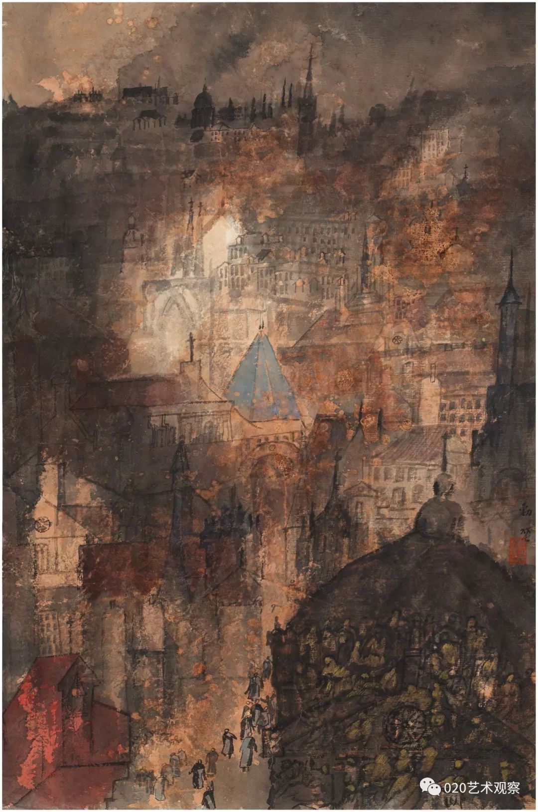欧洲写生之一 纸本重彩 93cm×62cm 2015年 李劲堃
