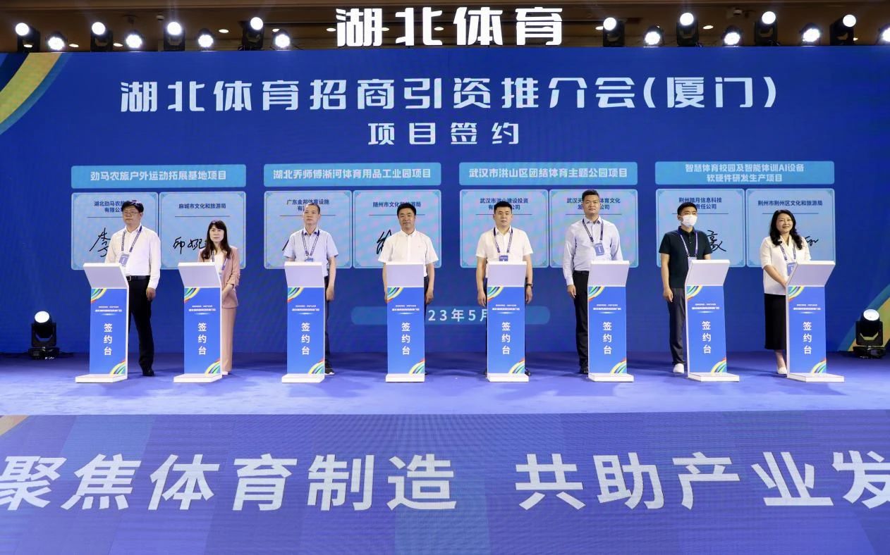 5月25日下午,正值2023中国国际体育用品博览会召开之际,湖北省体育局联合湖北省商务厅、湖北省人民政府驻厦门办事处,在厦门成功举办主题为“聚焦体育制造·共助产业发展”的湖北体育招商引资推介会。
