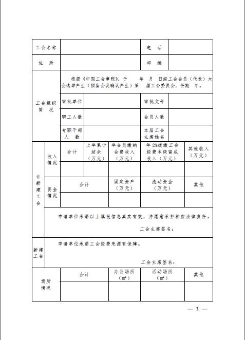 1)填好并盖好章的《工会法人资格申请登记表》一式三份。