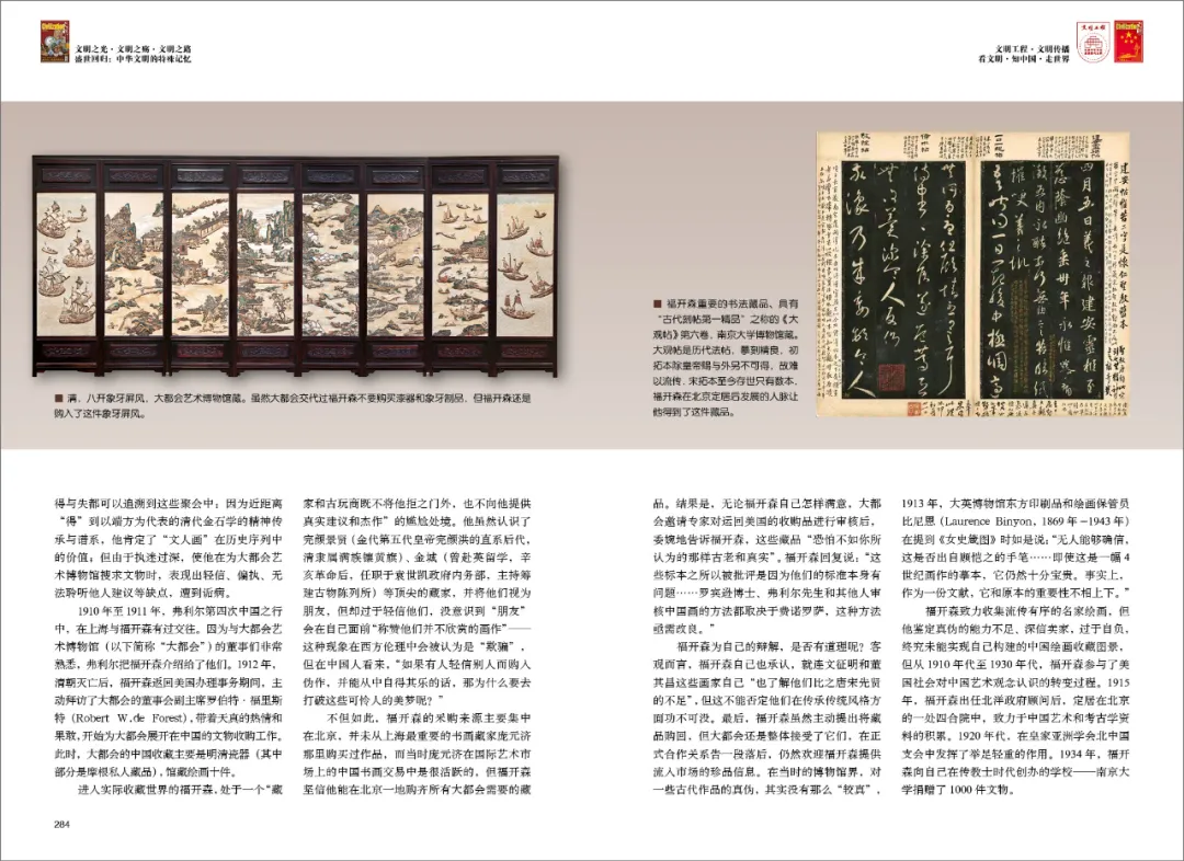 1910年至1911年,弗利尔第四次中国之行中,在上海与福开森有过交往。因为与大都会艺术博物馆(以下简称“大都会”)的董事们非常熟悉,弗利尔把福开森介绍给了他们。1912年,清朝灭亡后,福开森返回美国办理事务期间,主动拜访了大都会的董事会副主席罗伯特·福里斯特,开始为大都会展开在中国的文物收购工作。此时,大都会的中国收藏主要是明清瓷器(其中部分是摩根私人藏品),馆藏绘画十件。