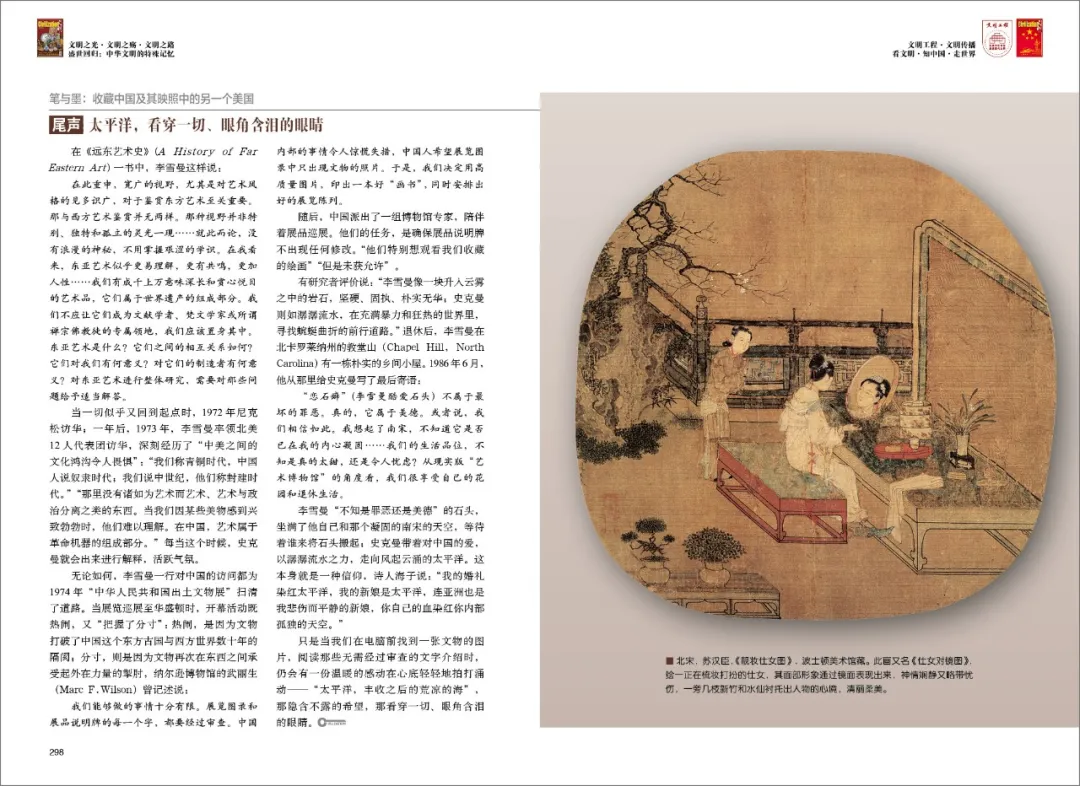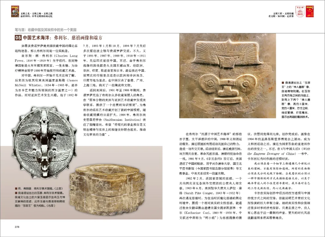 为此,无论是面对商人、学者、外交等不同领域的藏家,还是面对美国收藏中国的众多博物馆,抑或是文物、艺术等不同的收藏品类,我们的重点不在于按图索骥把某一收藏事件或藏品的来龙去脉完全讲述清楚——事实上,由于牵涉诸多复杂因素,任何一个细节上的不同都会使整个收藏事件呈现出不同的面貌,完全讲清楚是不切实际的——而是想探求美国是否通过收藏中国为他们的心灵问题找到了解决方案。事实证明,偏离了立国之基的美国人,能够欣赏中国艺术之美,却很难理解中国艺术背后“博大精深”的文化潜沉,结果是在“收藏中国”的同时“失去了中国”。