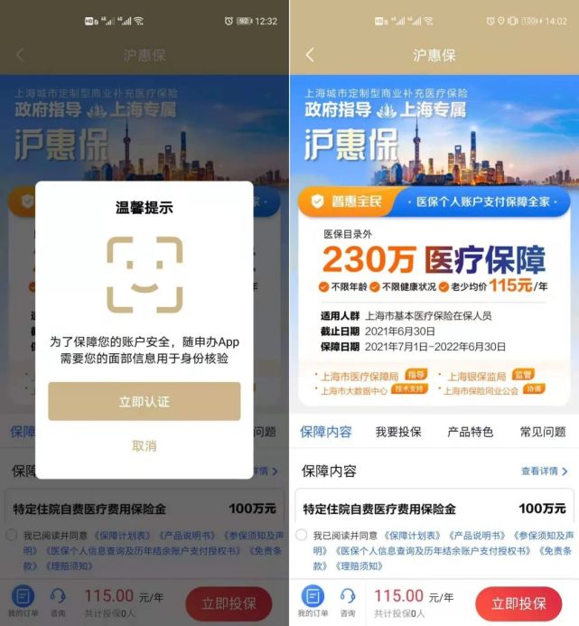 “沪惠保”不分男女老幼,保费统一115元/年,最高可获得医保范围外一年230万元的补充医疗保障。