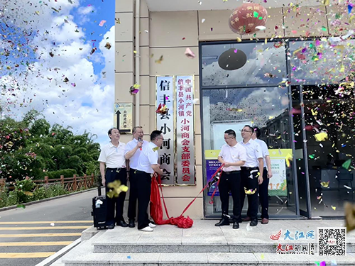 大江网/赣州头条客户端讯 通讯员李千华报道:深入推进“两个覆盖” ,为企业发展注入“红色动能”,近日,信丰县小河商会挂牌仪式举行。信丰县委常委、副县长李绍武和县委统战部副部长、工商联党组书记郭昌福莅临指导,小河镇党委书记陈贝、小河镇党委副书记、镇长杨磊、小河商会会长卢德光、小河商会党支部书记王建中及商会成员30余人参加活动。