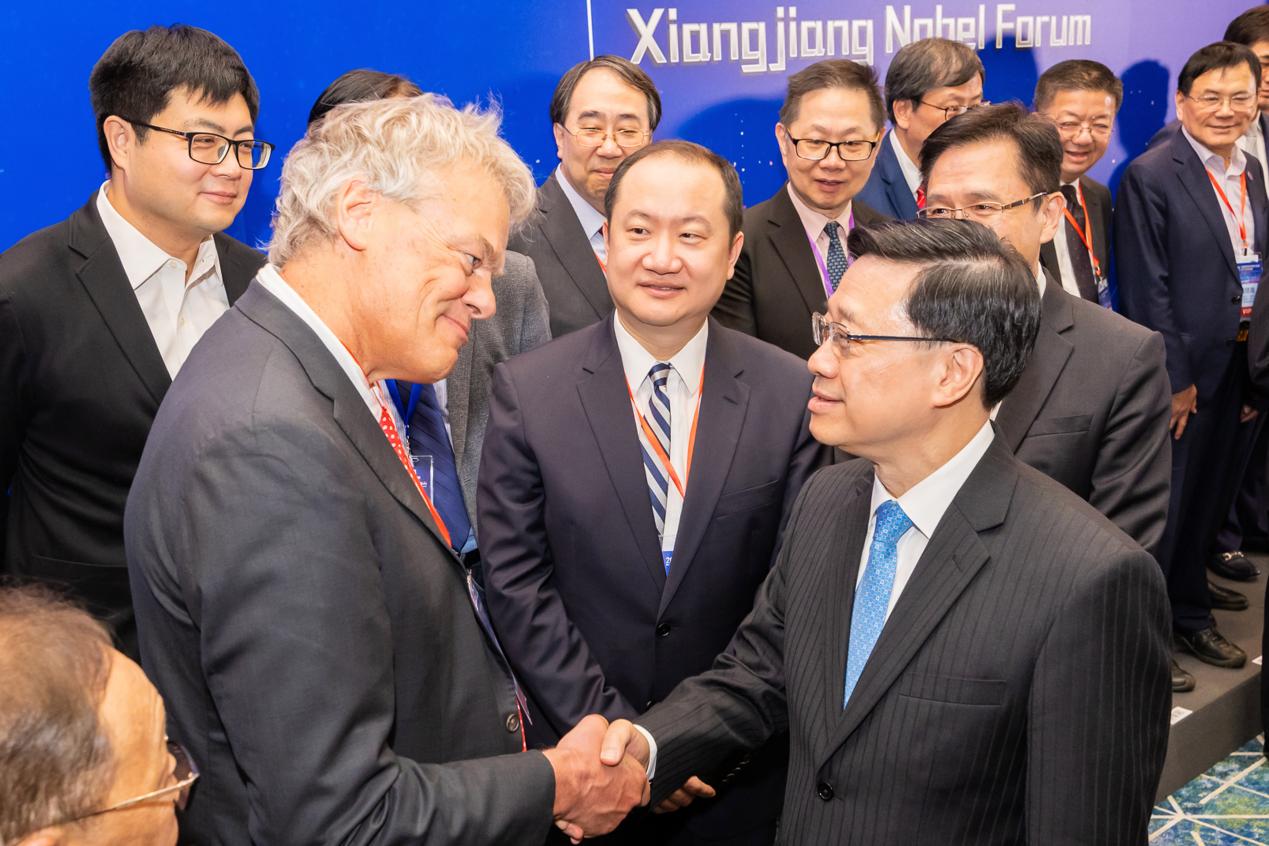 4月13日至16日,飞诺门阵董事长、格鲁吉亚国家科学院外籍院士沈寓实博士赴香港出席第二届“香港世界青年科学大会”暨2025“香江诺贝论坛”,参加开幕式及系列活动并出席圆桌对话,共同探讨人工智能等前沿科技的发展趋势及新国际环境下科创合作的机遇与挑战。会前,香港特区政务司司长陈国基小范围会见沈寓实等主要与会嘉宾。会上,香港特区行政长官李家超,中央政府驻港联络办副主任刘光源,全国政协常委、工信部原副部长、中国电子学会理事长徐晓兰致辞,并举行了国家(中关村)火炬科创学院香港分院揭牌和诺贝尔亚太中心揭牌仪式,飞诺门阵作为京津冀科创代表企业与香港科技园、香港数码港和香港北京高校校友联盟签署在港发展合作备忘录,积极开展赴港业务。出席大会并发言的还有:中国科学院院士顾秉林,中国工程院院士戴琼海,中国工程院院士陈清泉,香港特区政府创新科技及工业局局长孙东,香港北京高校校友联盟会长李然,乌克兰国家工程院外籍院士李雨航,以及爱德华·莫泽、迈克尔·莱维特等多位诺贝尔奖和图灵奖得主。