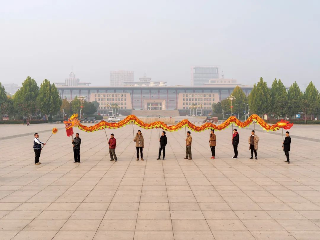 2018年,多人在县城的广场上手持“金龙”。(图/张晓)