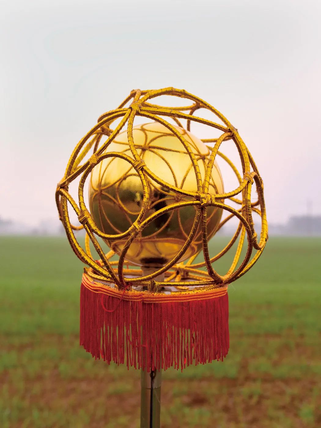 2018年,河南省霍庄村。插在地上的手持龙珠。(图/张晓)