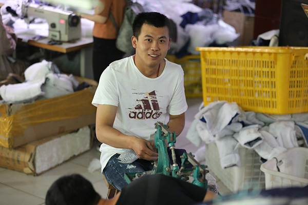 陈晖:我们这的工人每天大概8、9点上班,晚上8、9点下班,有时候订单多了会加班,时间不是很固定,因为我们不是正规的公司,就是家庭作坊形式的工厂,所以工人会自由很多。很多工人其实一天只干同一个活,比如你是钉纽扣的,那你可能一天就得钉2000多个纽扣,基本上天天如此。工作虽然枯燥点吧,但是很多年纪大一些的阿姨们在家本来也没有什么事干,出去工作的话又很难找到工作,还不如在我们的工厂里做棉服,既能挣钱,人多了也热闹些。