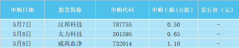 本周(5月5日—5月11日),国内方面,中国4月CPI、PPI、进出口、金融数据将公布。海外方面,美联储、英国央行将公布利率决定。本周沪深两市将有3只新股申购,两市超487.33亿元市值限售股解禁。