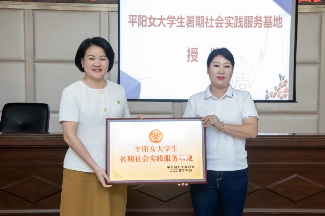 平阳县妇联携手鳌江商会联合打造了“平阳女大学生暑期社会实践服务基地”,旨在进一步拓宽女大学生参与社会实践的途径,实现学校教育与社会教育的“无缝衔接”。本次活动上,县妇联党组书记、主席周丽君和鳌江镇委副书记张雪芳为参加活动的女大学生送上暖心大礼包和一本女性励志书籍,祝愿所有学子通过求学之路都能梦想成真。