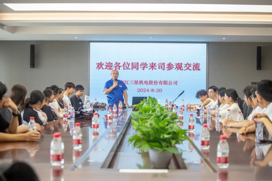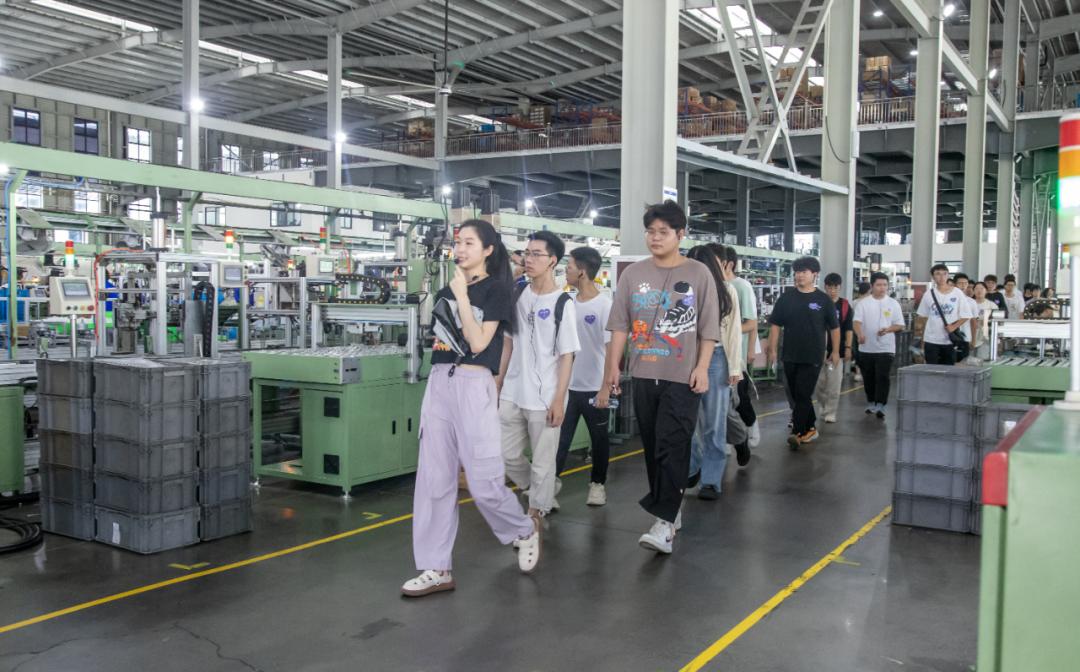 “欢迎大家学成归来回鳌江,寒暑假如果有需要暑期工作的同学,在同等条件下我们优先安排岗位。”活动伊始,94名学子在工作人员的带领下分批前往浙江三星机电股份有限公司新厂房参观企业生产流水线,深入了解企业发展历程、特色文化、规划需求等内容。除了三星机电外,还有益坤电气、缤江名都、希楠电子等鳌江三十余家企业为回乡大学生提供500余个暑期实践岗位,用心用情做好大学生圆梦帮扶工作的同时,为大学生留平就业助力赋能。