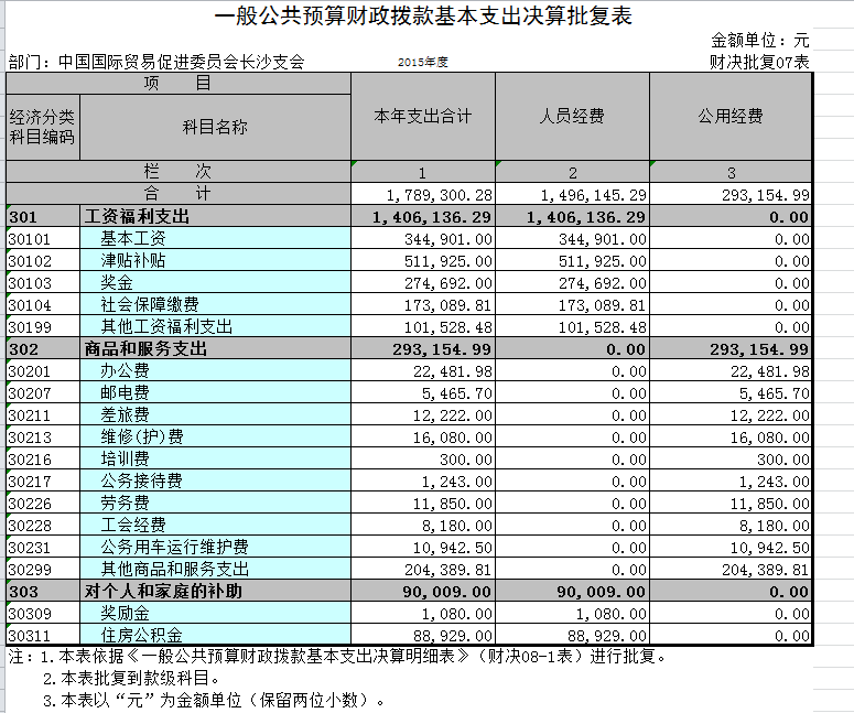 2015年公共预算财政拨款支出356.78万元,其中①基本支出178.93万元,较上年增加26.82万元,增长15%。基本支出系保障我会机构正常运转、完成日常工作任务而发生的各项支出。包括用于在职和离退休人员基本工资、津贴补贴等人员经费以及办公费、印刷费、水电费、差旅费、办公设备购置等日常公用经费;②项目支出177.85元,较上年减少144.32万元,降低81%。项目支出系我会贸促发展、对外交流商务活动和开拓国际贸促市场、帮助企业走出去等项目经费。
