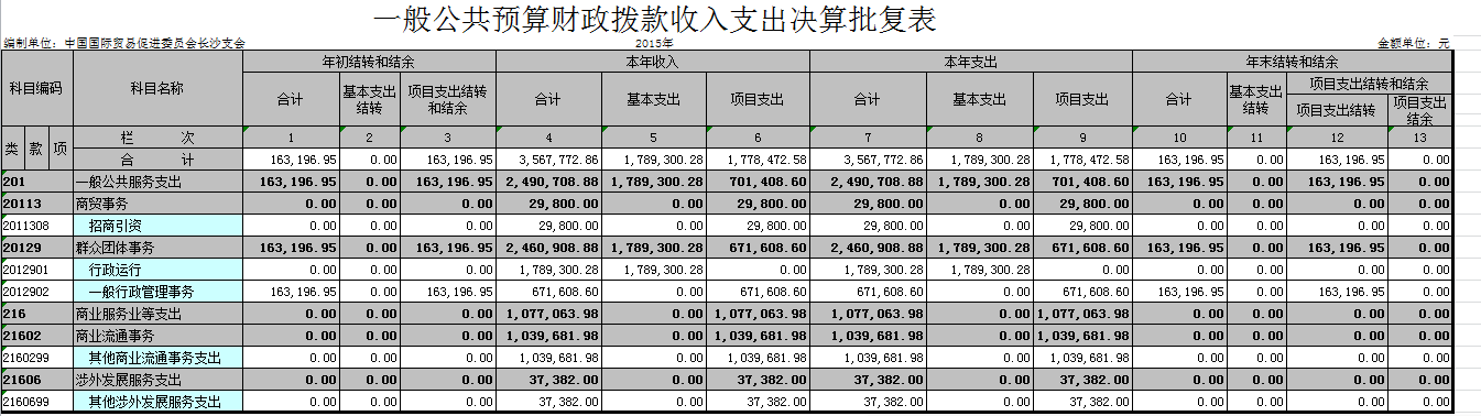 长沙市贸促会2015年年度收入356.78万元,本年度支出356.78万元,收支结余0万元,年末结转和结余16.99万元。2015年度一般公共预算财政拨款本年度收入356.78万元,本年支出356.78万元,年末结转和结余16.32万元。