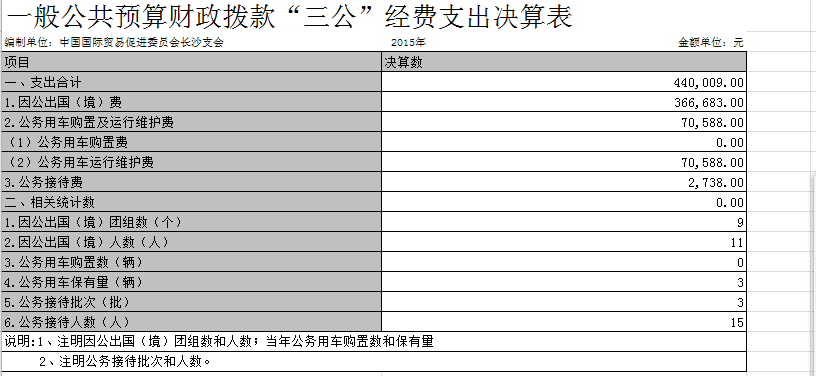 长沙市贸促会2015年度三公经费支出合计44万元.