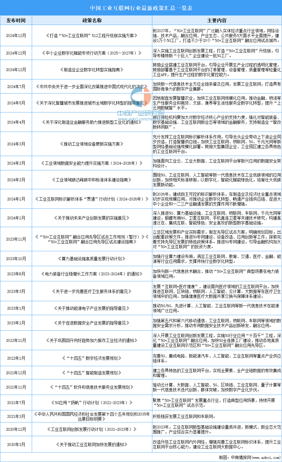 政策是推动工业互联网发展的重要保障,近年来我国出台了《打造“5G+工业互联网”512工程升级版实施方案》《中小企业数字化赋能专项行动方案(2025—2027年)》《制造业企业数字化转型实施指南》等一系列相关政策以指导和促进工业互联网产业的发展。