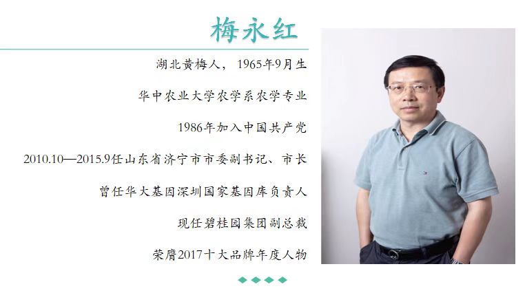 梅永红,曾任山东济宁市市长、华大基因深圳国家基因库负责人,现任碧桂园集团副总裁。