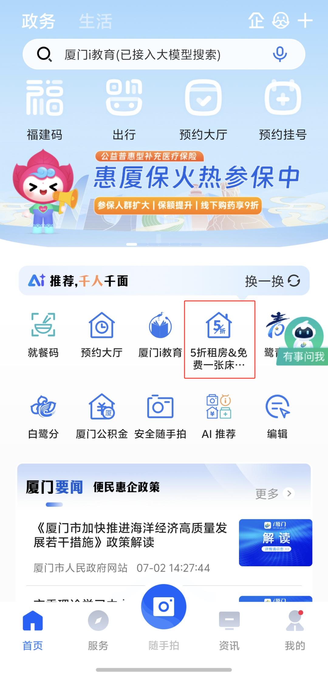 申请人在“i厦门”平台填写个人信息并提交其他申请材料。