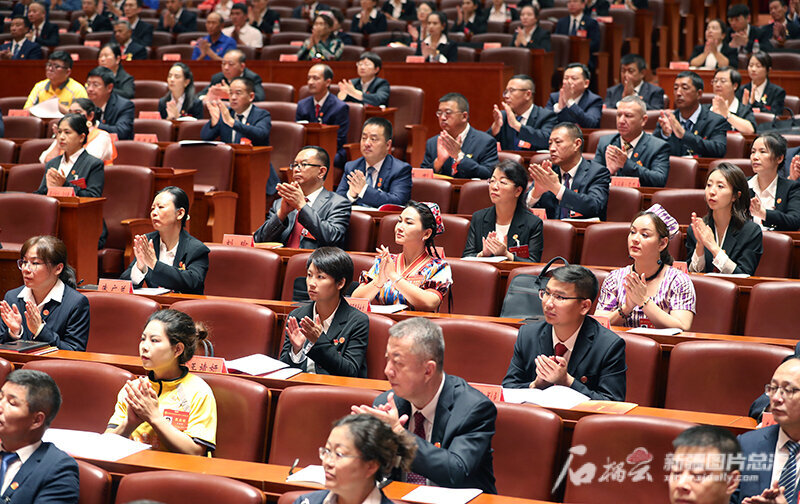 8月20日,大会听取自治区总工会第十二届委员会工作报告,与会代表报以热烈掌声。石榴云/新疆日报记者 崔志坚 摄