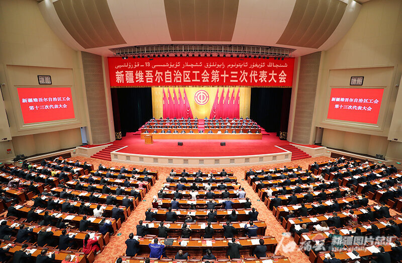 8月20日,新疆维吾尔自治区工会第十三次代表大会在新疆人民会堂开幕。石榴云/新疆日报记者 崔志坚 摄