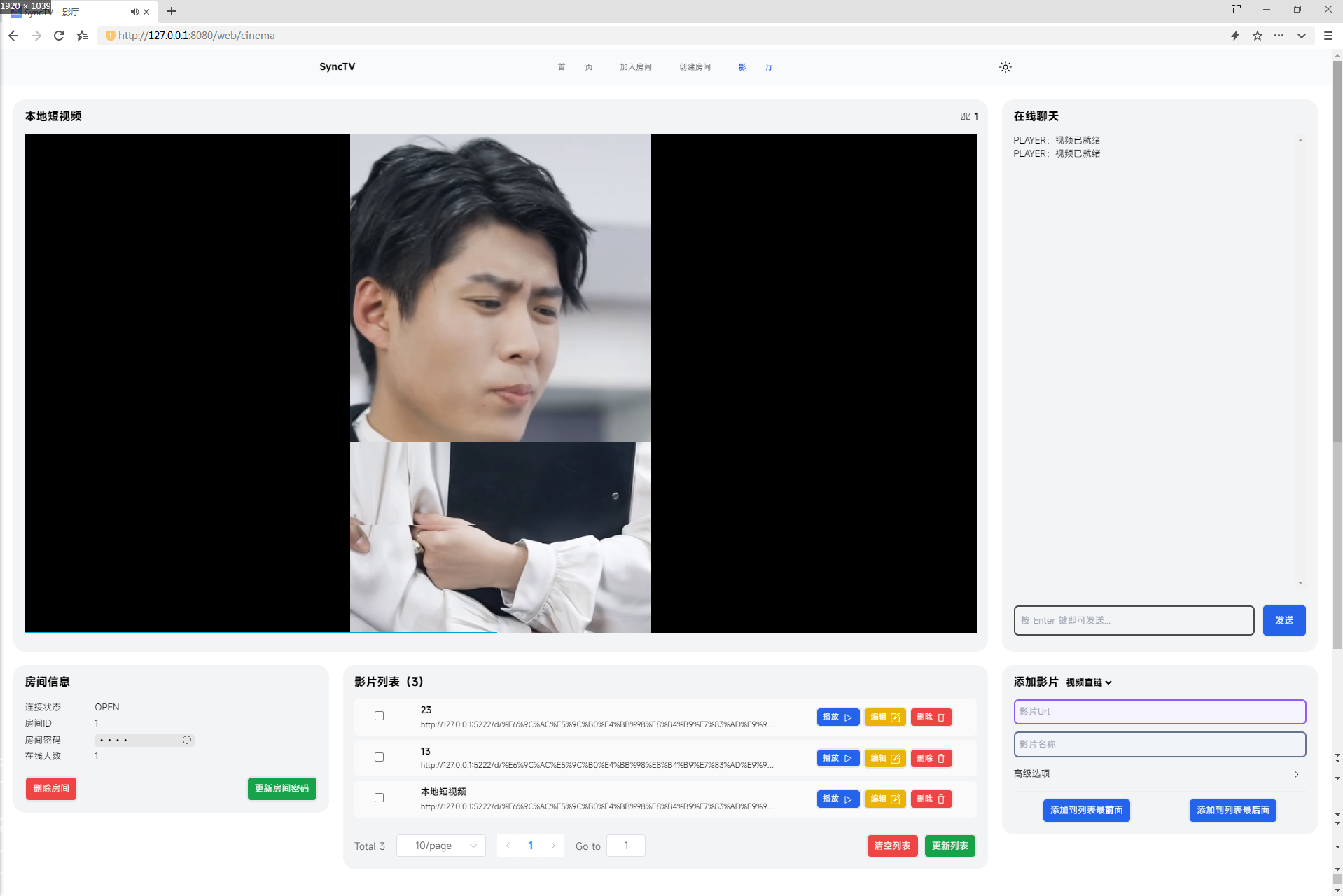 添加好后 可以在影片列表点击播放,然后就开始播放了,如果忘记密码可以点击左下角房间密码后面的小圆圈即可显示密码